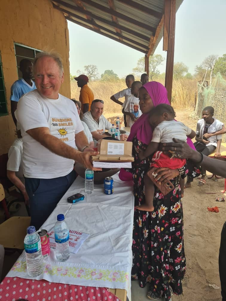 Dr. Steven Bick presenting gifts to the children of Sankandi School 🎁📚✨