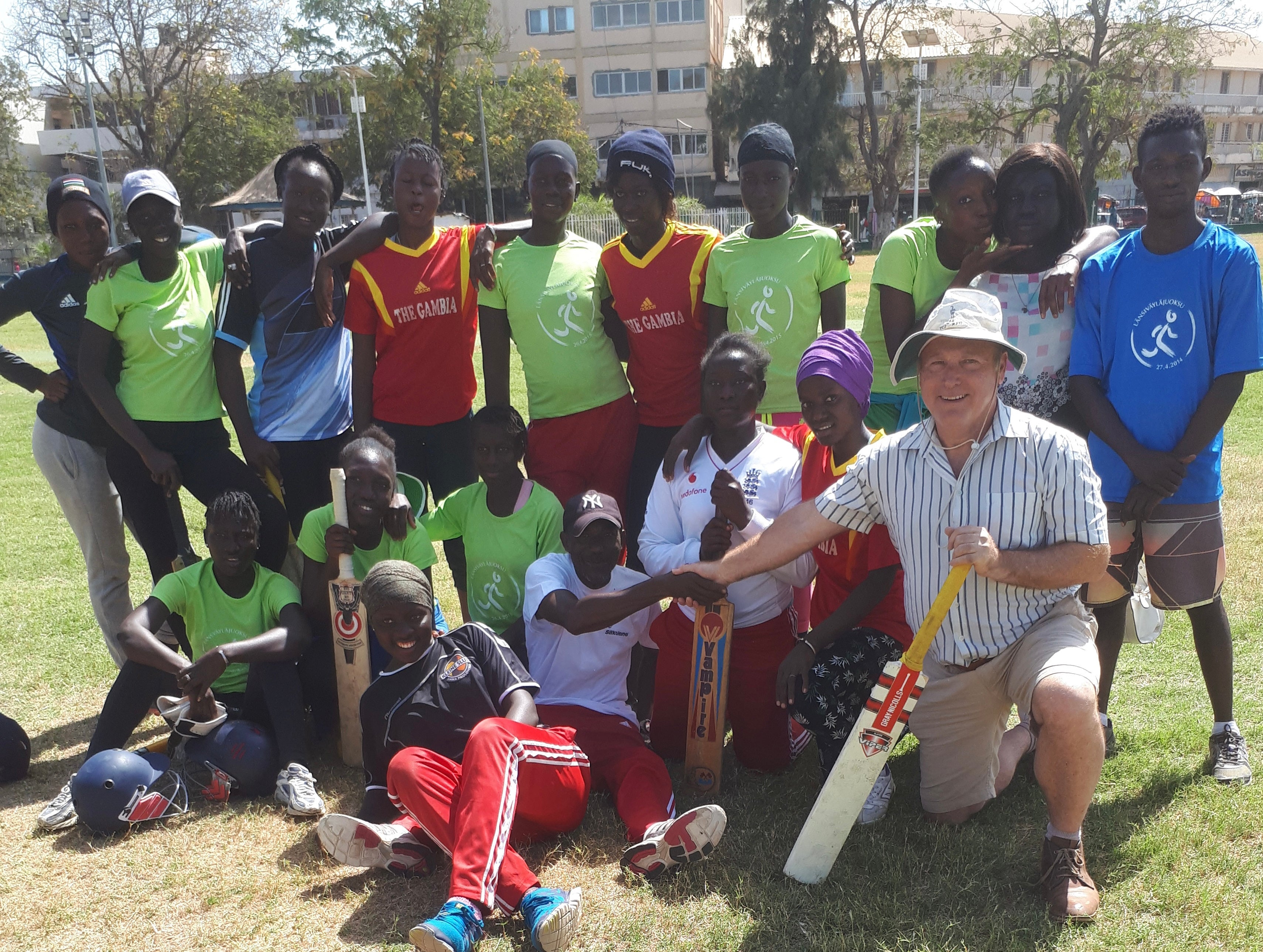 Dr. Steve with the Gambia Cricket Team at a Test Match